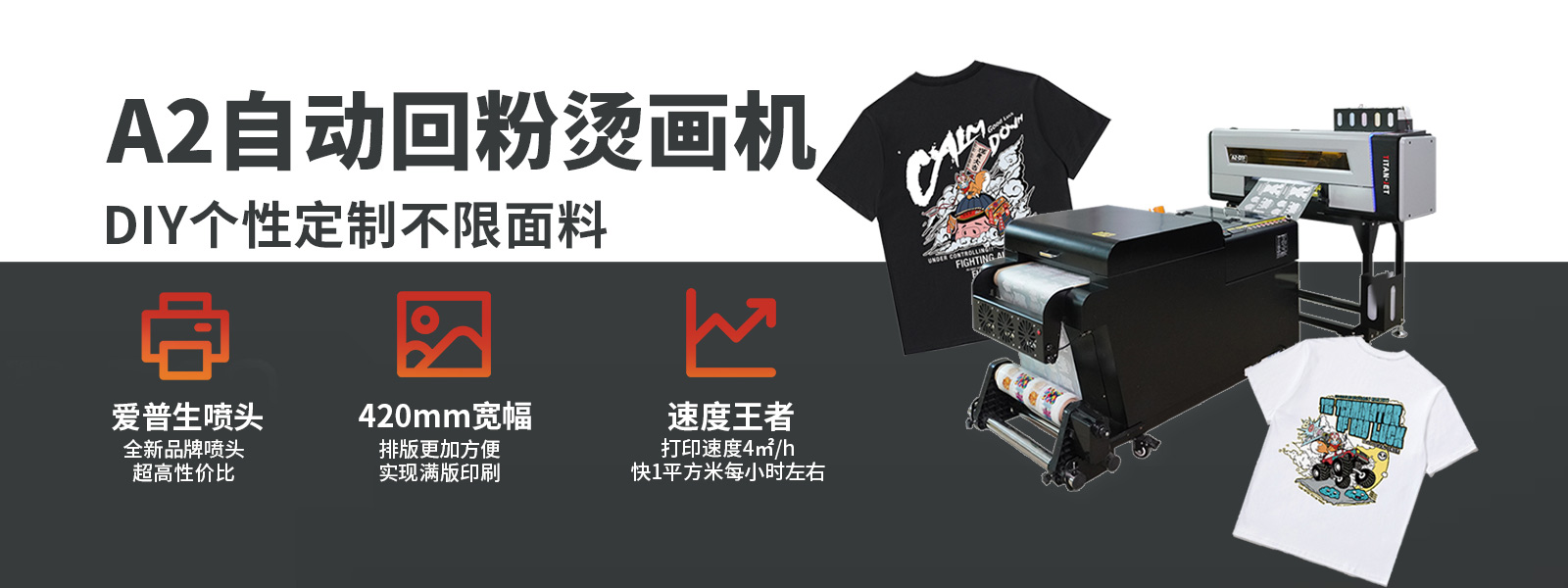 公司目前主要產(chǎn)品有白墨燙畫(huà)打印機(jī)、水晶標(biāo)打印機(jī)、皮革打印機(jī)、抖粉機(jī)等設(shè)備。