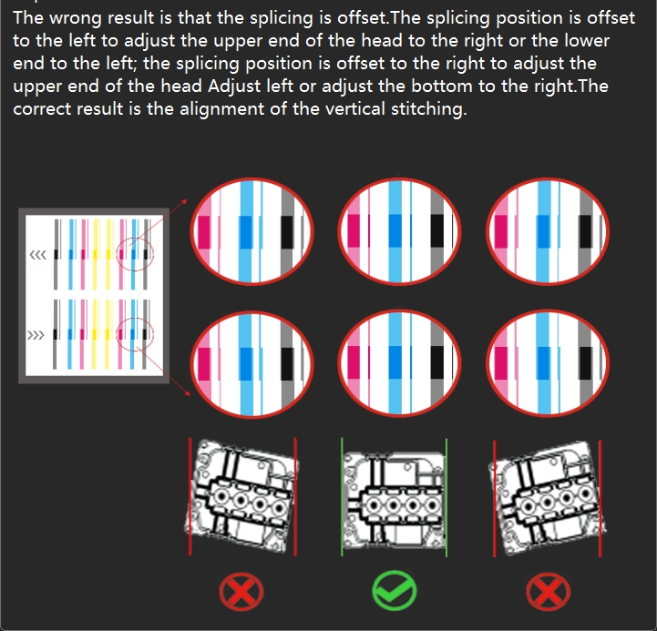 After all the above steps are completed, the calibration is complete, and the job file is printed again to check the final print effect. If the above calibration is completed, the lines are aligned, but the actual print job file, the pattern is still not aligned, it is recommended to repeat the above steps once. If it is the same, it is necessary to rule out whether the print head nozzle is abnormal, check the status of the print head nozzle, whether there is a deficiency or abnormal flying ink, if so, soak and clean the print head to see whether it is improved.