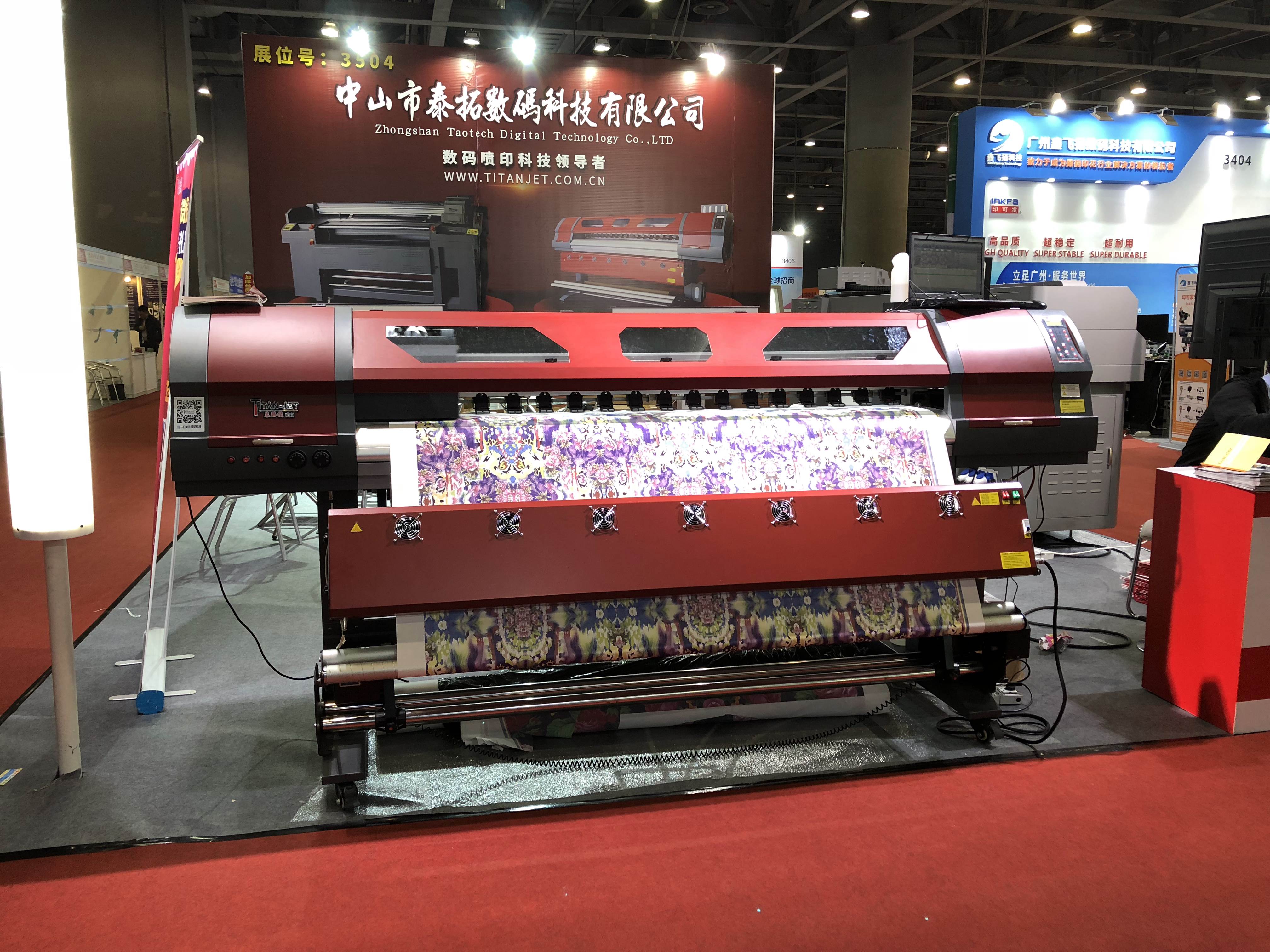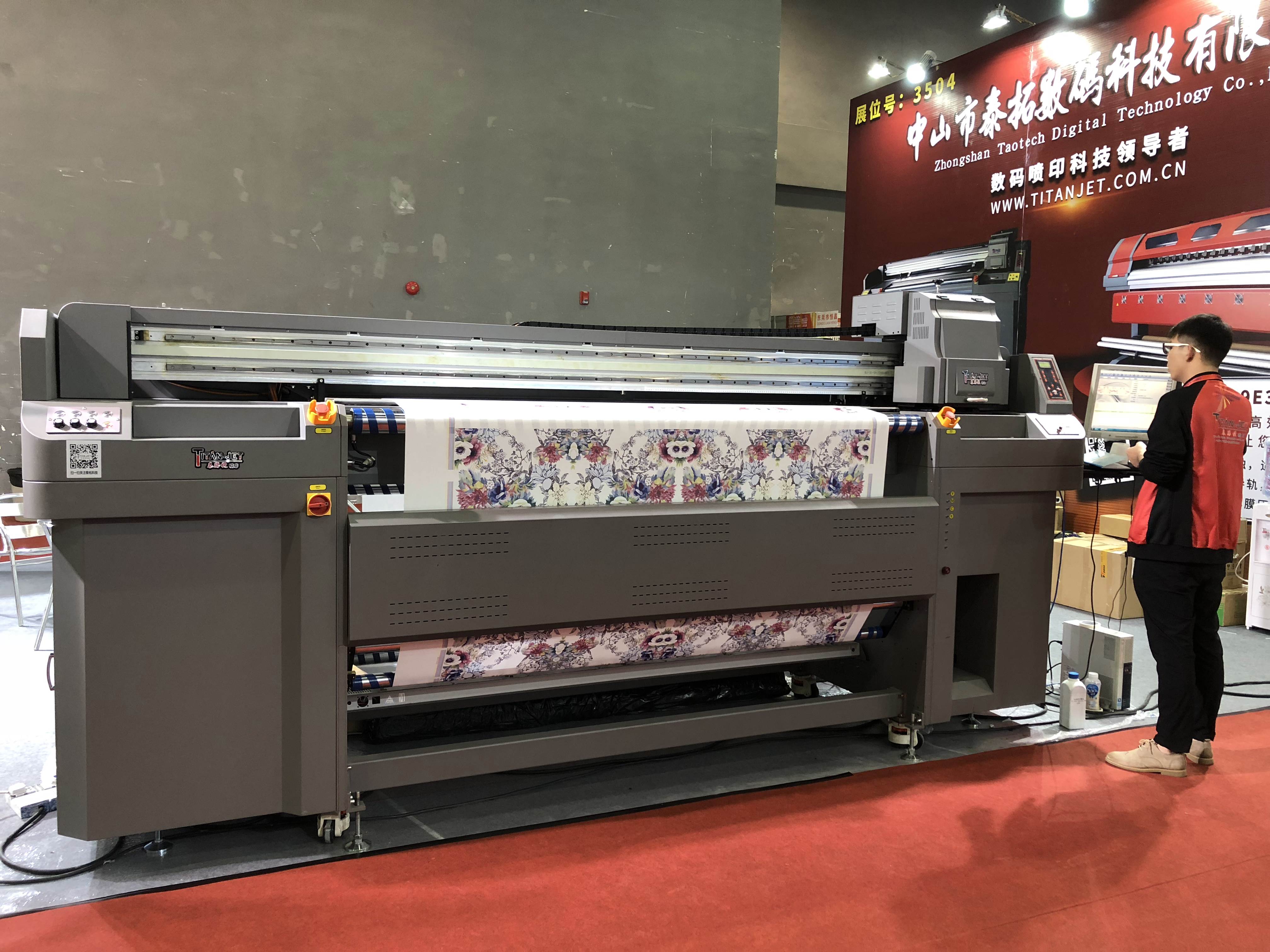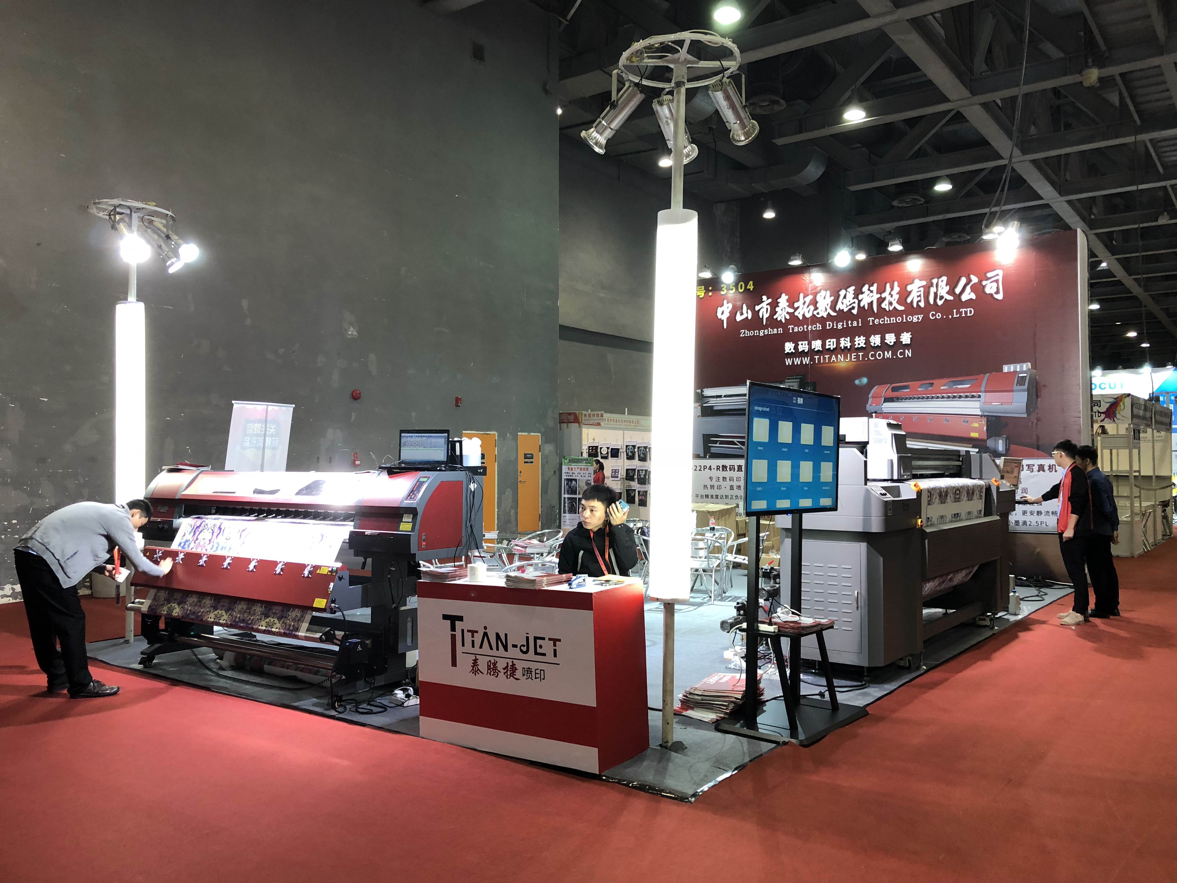 此次展會泰拓科技以數(shù)碼印花為主題,展示了泰拓科技自主研發(fā)生產(chǎn)的TT-22P4數(shù)碼直噴印花機(jī)和TT-19E3數(shù)碼打印寫真機(jī)。
