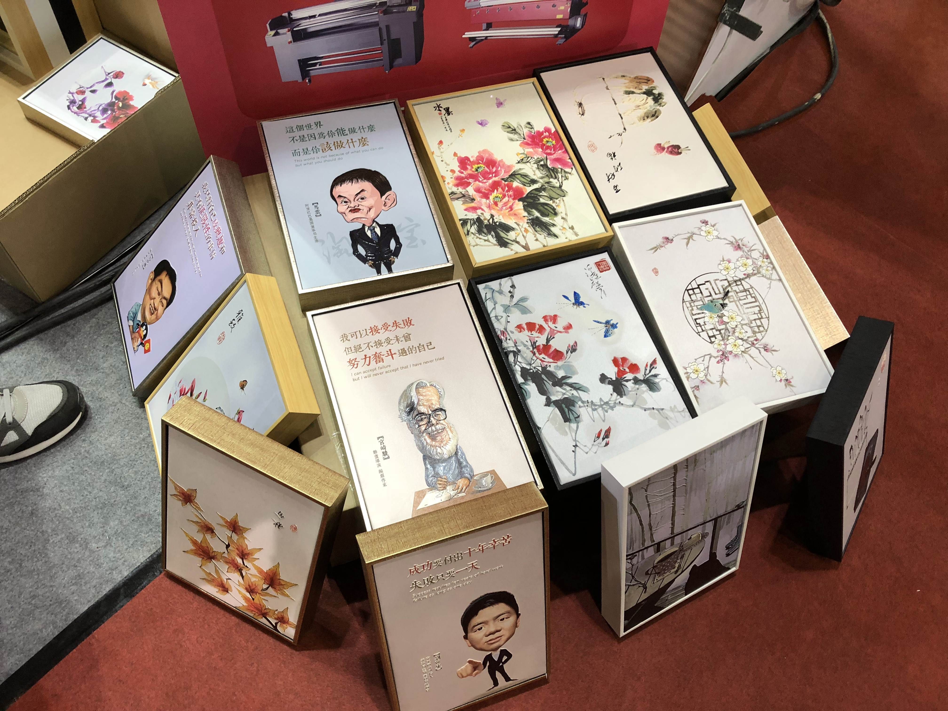 除了展示的兩臺數(shù)碼印花機(jī)大受歡迎外,泰拓科技更是在現(xiàn)場優(yōu)先創(chuàng)新,搞起了免費送禮活動,所贈送的精美裝飾畫均采用泰拓科技所自主研發(fā)的TT-3304G5HR卷材UV打印機(jī)所打印出來,且畫上的浮光立體效果非常優(yōu)質(zhì),泰拓科技的超優(yōu)質(zhì)的UV打印機(jī)以及領(lǐng)先行業(yè)的應(yīng)用方案,均不停讓現(xiàn)場客戶產(chǎn)生了濃厚的興趣,紛紛咨詢洽談。
