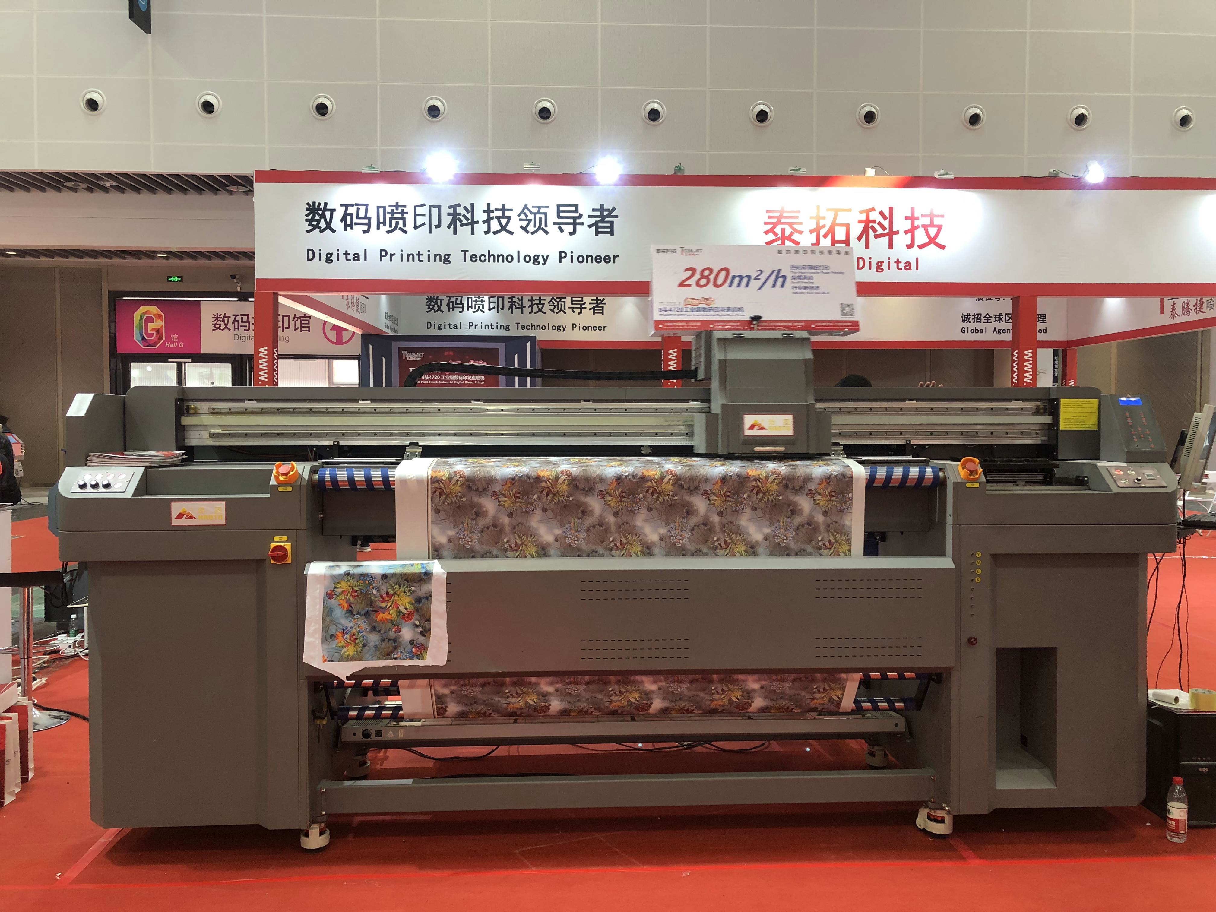 在今年2019年頭2月廣州迪培思展會,和3月昆山迪培思展會上,泰拓科技的八頭數(shù)碼印花機(jī)22E8都在現(xiàn)場上掀起了一陣不少的風(fēng)浪——8個(gè)噴頭配置、高達(dá)280平方米每小時(shí)、自動恒溫系統(tǒng)、甚至還可以做直噴應(yīng)用,這些“黑科技”讓不少慕名而來的海內(nèi)外廠商和客戶大感驚嘆,紛紛洽談購機(jī)和合作事宜。