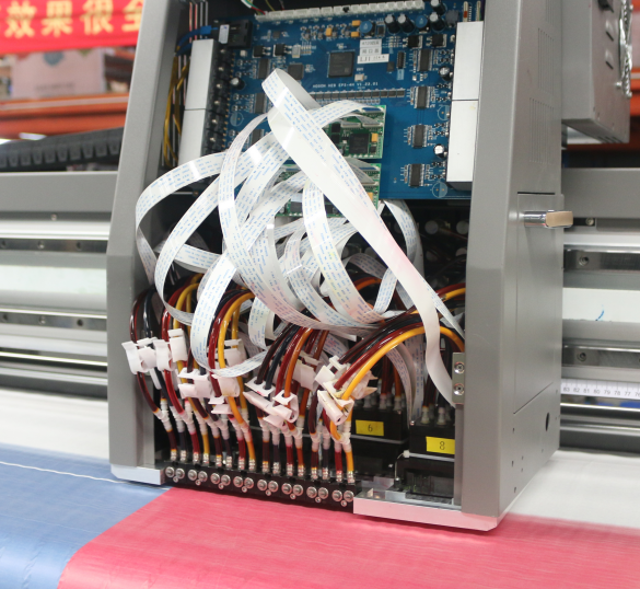 不同于別家的采用直插式墨囊,泰拓的研發(fā)部依托國際先進(jìn)的4720噴頭,發(fā)明了自己的專業(yè)供墨模塊,給8頭機(jī)裝上了工業(yè)墨路系統(tǒng),負(fù)壓壓墨、墨墊吸墨,墨路系統(tǒng)更加順暢,極大的提高了生產(chǎn)效率。