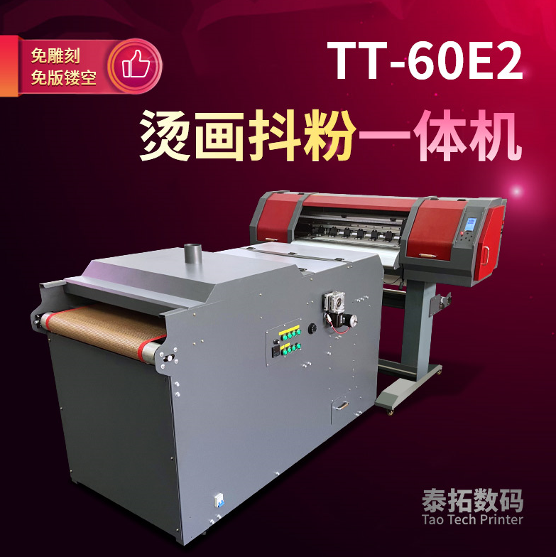 但是這款羅蘭的這款機器價格偏高,對一般的小成本創(chuàng)業(yè)商家來說投資成本有點高。好在今年又出現(xiàn)了一款柯式燙畫打印抖粉一體機,一鍵就可打印鏤空燙畫,只需要一套燙畫打印機抖粉一體機就可以打印任何你想要的圖案。比如大火的泰拓數(shù)碼的那款60E2燙畫打印抖粉一體機。