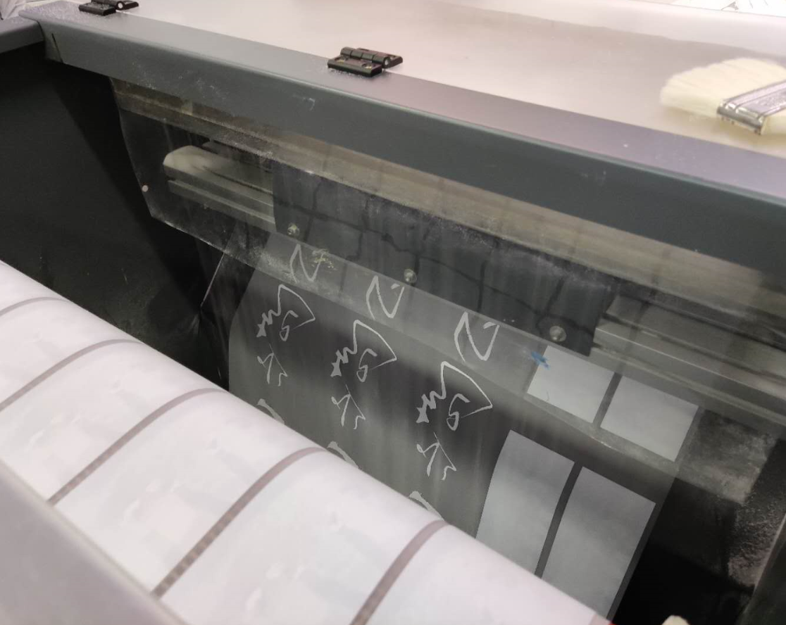 5、導帶烘干傳送出來的就是可壓燙的燙畫成品,可直接拿去壓燙,也可以收卷保存,不會有糊墨現(xiàn)象發(fā)生。