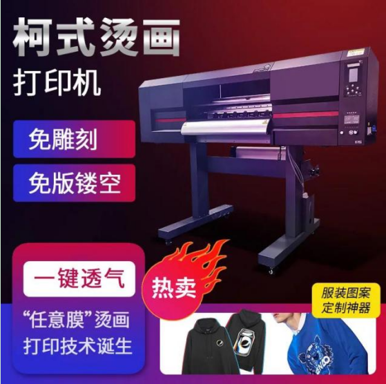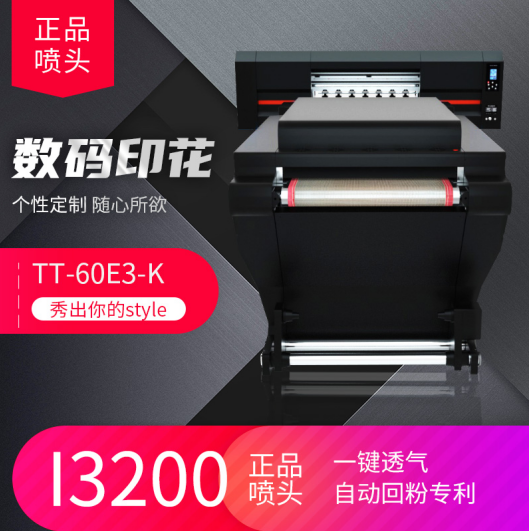 泰拓數(shù)碼二代柯式燙畫抖粉一體機(jī)60E3-K的任意膜技術(shù)就是為了實現(xiàn)這個想法而誕生,增加一個噴頭打涂層,燙金膜、燙銀膜、鐳射膜、傳統(tǒng)膜、離型紙、反光膜、彩虹膜等皆可打印,膜的成本降低一半!該項技術(shù)將給印花界帶來更大的發(fā)展機(jī)遇!