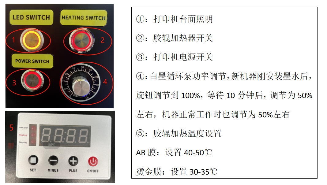 二級覆膜部分按鈕和溫度設置