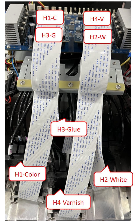 11.安裝打印頭,連接噴頭排線,檢查墨囊