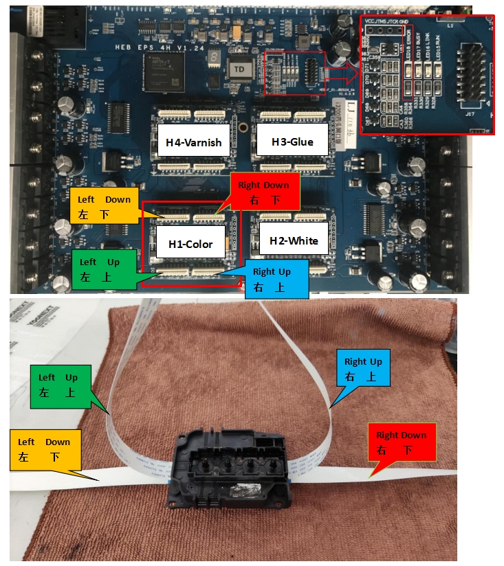 11.安裝打印頭,連接噴頭排線(xiàn),檢查墨囊