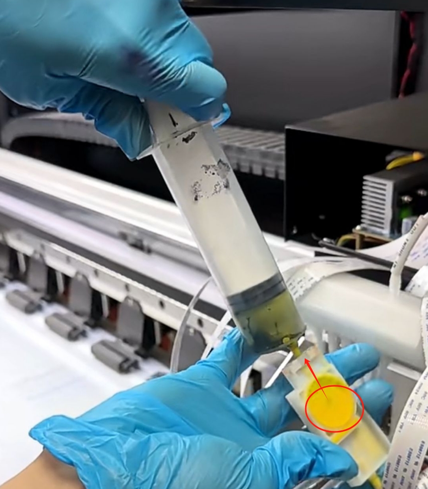 注意:檢查所有墨囊,如果墨囊沒有填滿墨水,把墨囊倒置過來使用注射器抽墨,