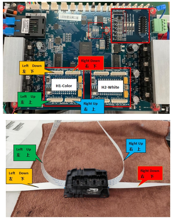 (請(qǐng)注意打印頭排線的順序和墨囊的順序)