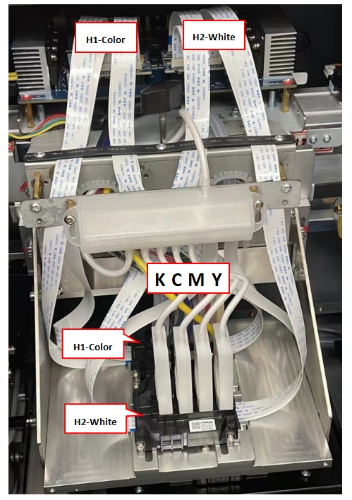 11.安裝打印頭,連接噴頭排線,檢查墨囊