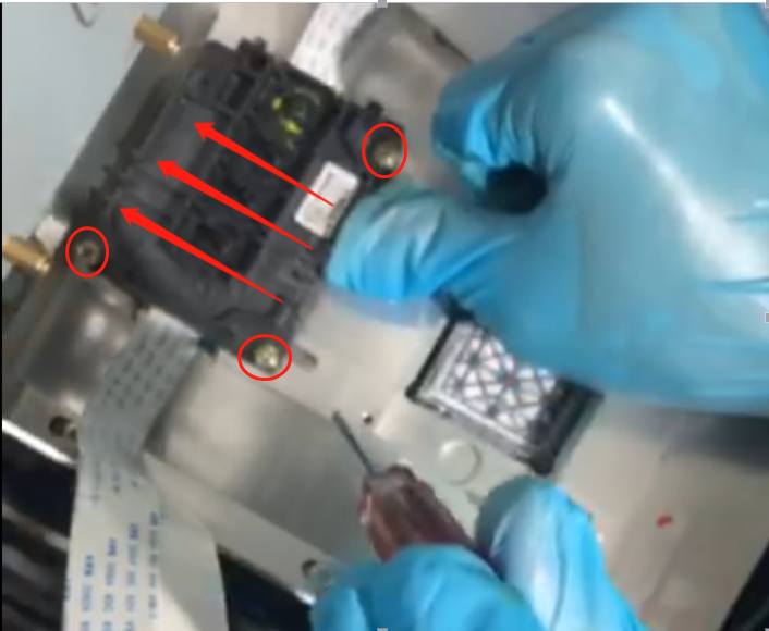 11.安裝打印頭,連接噴頭排線,檢查墨囊