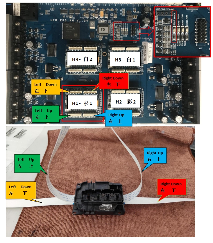 打印頭和墨囊連接順序,如圖所示: